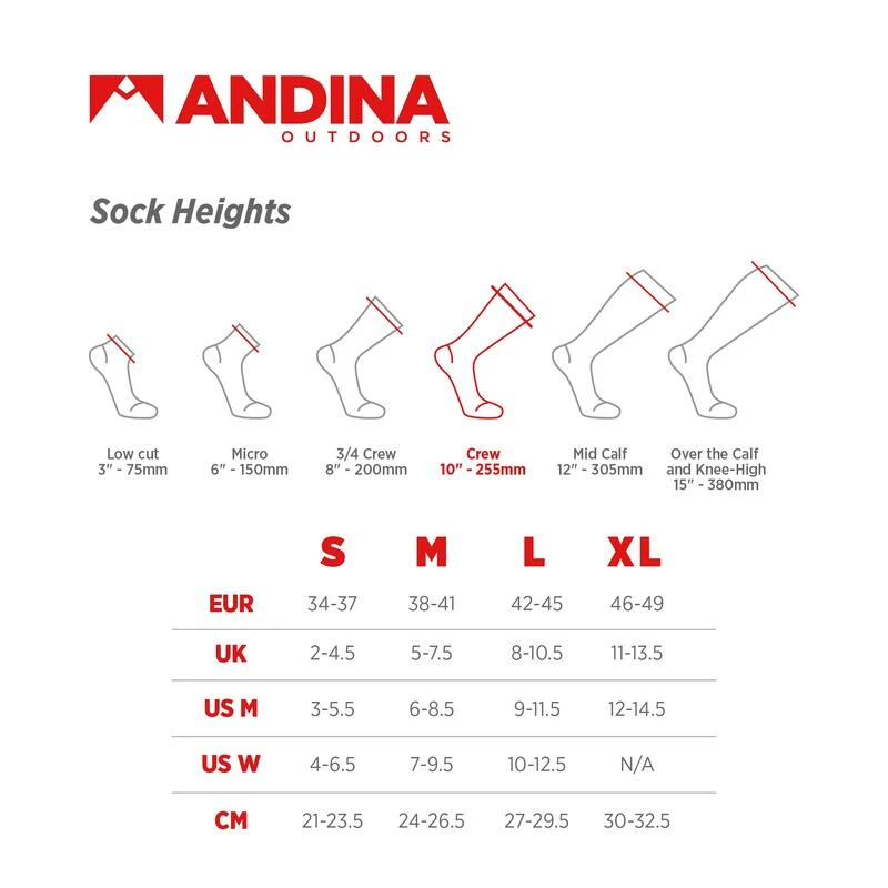 IDÉALES POUR LA RANDONNÉE : Ces chaussettes de randonnée sont parfaites pour l’alpinisme ou toute autre activité sportive en montagne. Leurs propriétés thermiques en font le cadeau idéal pour votre famille et vos amis. Disponibles en tailles : EU 34-37, 38-41, 42-45, 46-49 GESTION DE L’HUMIDITÉ : Les fibres d’alpaga transfèrent l’humidité de la peau vers l’extérieur par capillarité et la distribuent à la surface des fibres. En conséquence, l’humidité sur le pied s’évapore mieux et vous garde au sec et agréablement au chaud. ENTREPRISE FAMILIALE ÉTHIQUE: Nous sommes une entreprise familiale du Pérou et fabriquons nos produits depuis 1991. Nous nous distinguons par une production de haute qualité et avons une connaissance approfondie des processus innovants dans la production textile. EXCELLENT SERVICE CLIENT : Nous voulons que nos clients soient satisfaits : si vous avez des questions ou si vous avez des problèmes, n’hésitez pas à nous contacter. Notre service client est toujours prêt à vous aider et à trouver la meilleure solution pour vous.
