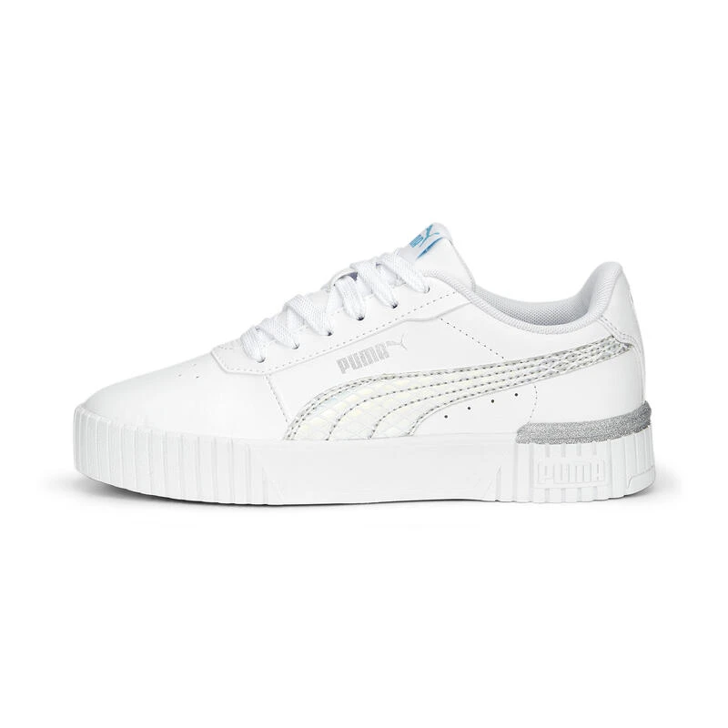 We hebben een speelse draai gegeven aan ons populaire Carina-model in deze glinsterende sprookjesachtige sneaker. Let op de op zeemeermin geïnspireerde metallic branding en glitterdetails op de hiel.