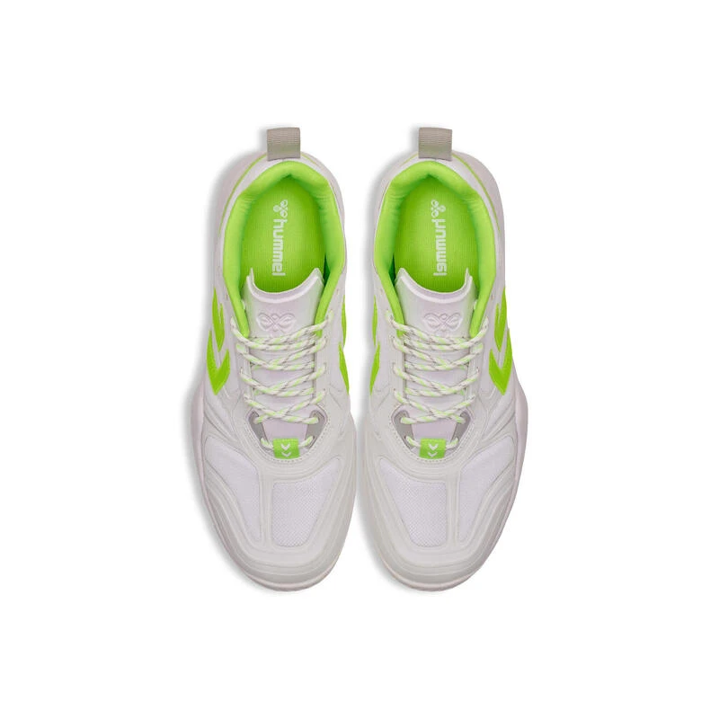 Midsole padding hummel® Reach. Zachte neopreen tong. Technisch gaas bestaande uit twee lagen, met gerecycleerd PET. Interne hielstabilisator. Thermofusibele TPU verstevigings kooi. Ortholite® gerecyclede binnenzool.