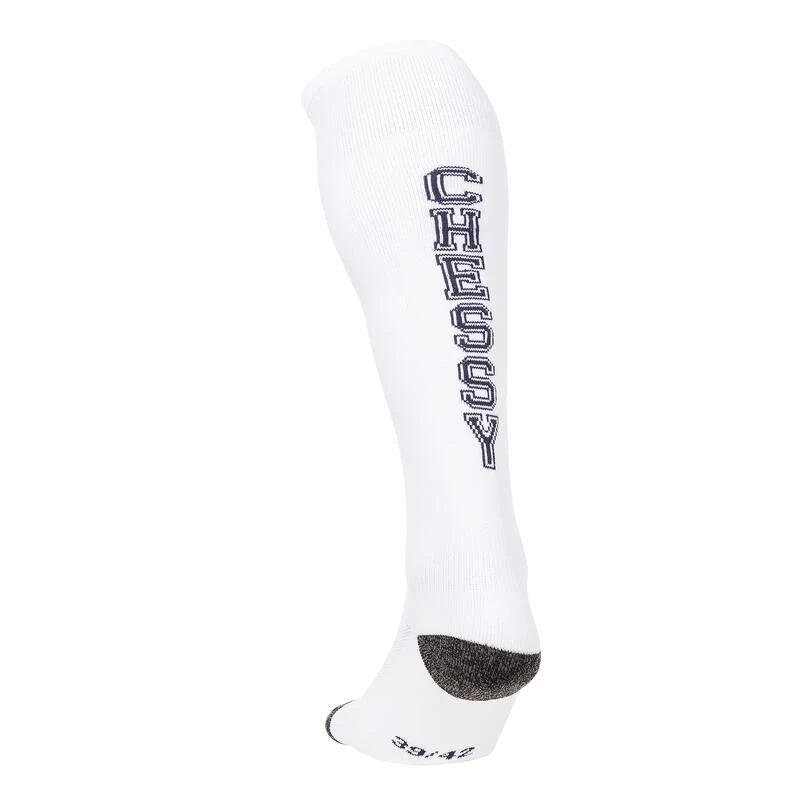 8614572Voor kinderen of volwassenen die witte hockeysokken willen van de club Chessy.Sokken speciaal voor hockey, met een specifieke vorm zodat je scheenbeschermers erin passen.