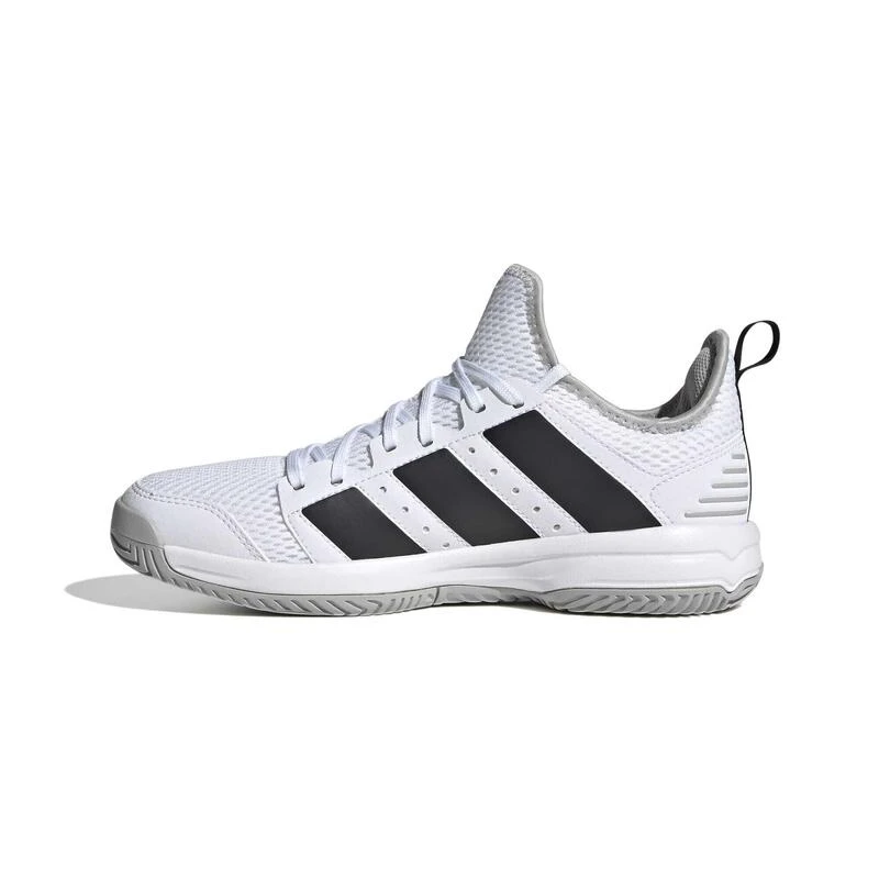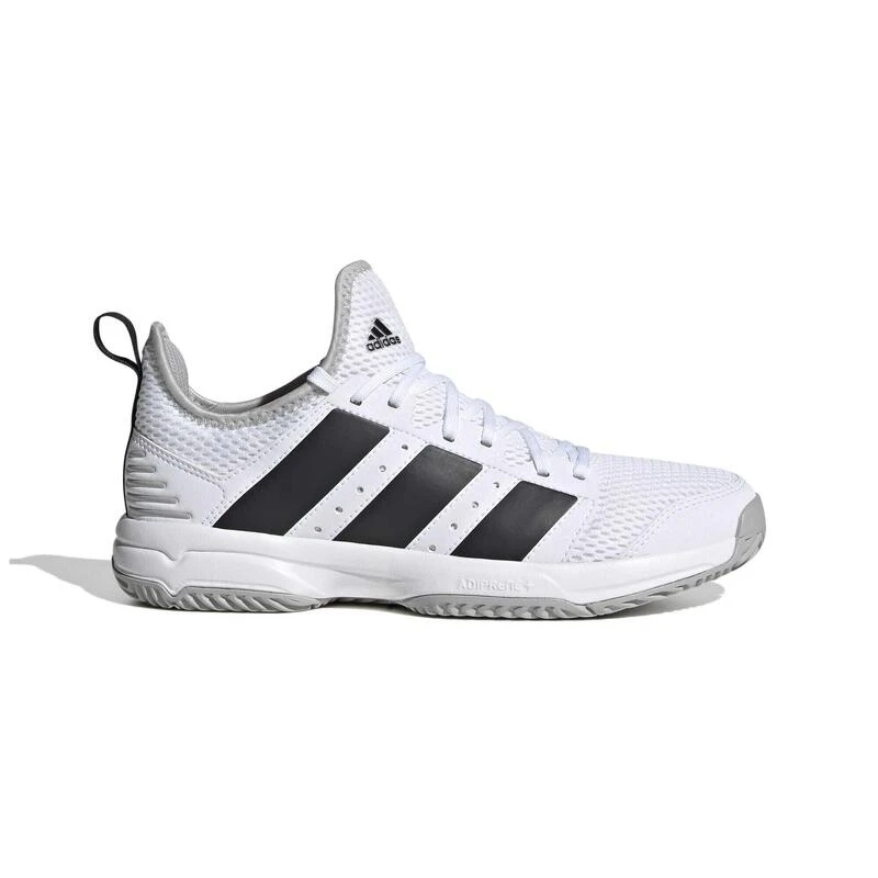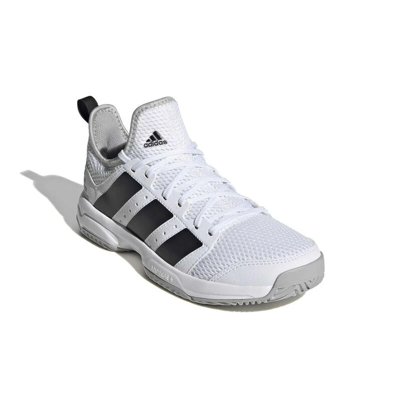 De dominantie op het indoorveld begint met deze adidas Stabil junior schoenen. Dankzij het duurzame bovenwerk kun je krachtig presteren bij sporten als handbal, volleybal en vloerhockey. De EVA tussenzool dempt elke landing. De gripvaste buitenzool laat geen sporen achter op de baan als jij je stempel drukt op het spel. Sokachtige pasvorm