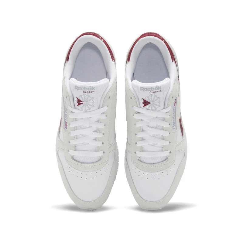 Krijg de OG stijl Reebok. De Classic Leather schoenen werden geïntroduceerd in de jaren tachtig, en zijn er sindsdien nog steeds. Deze versie verbetert je basketbalspel met een mix van vintage-stijl materialen zoals suède en leer. Het Union Jack logo en de zijstrepen blijven trouw aan het origineel.