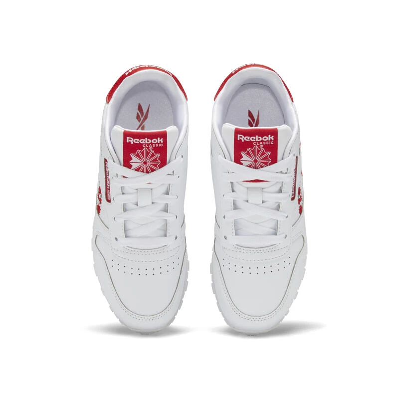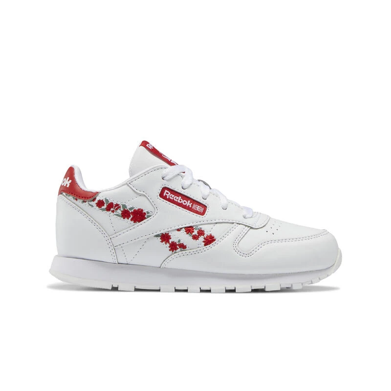 Wie zegt dat kransen geen deel kunnen uitmaken van het dagelijks leven? Deze Reebok schoenen voor meisjes combineren jaren 90 nostalgie met een klassiek silhouet. Een streepmotief opzij creëert een 3D-effect met geborduurde bloemen en gezeefdrukte bladeren. Het zachte leren bovenwerk maakt ze comfortabel voor onderweg.