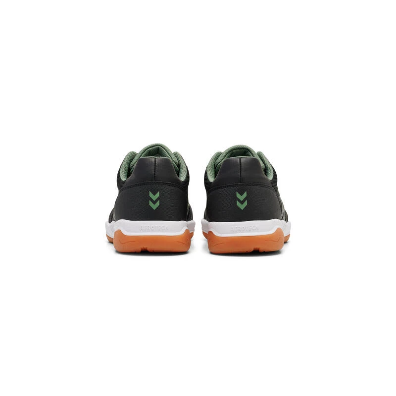 EVA tussenzool. Gerecycled mesh bovenwerk. PU teen stiksels. Interne hielstabilisator. Interne demping. Non-marking rubberen buitenzool.