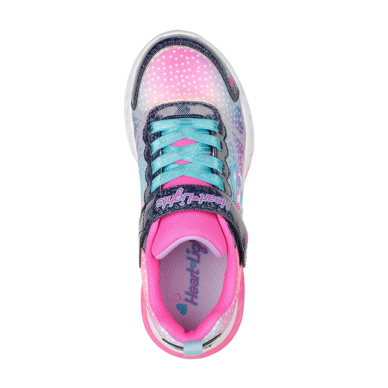 Met de SKECHERS Flutter Heart Lights – Simply Love is je hart bij elke stap aanwezig. Deze lichtgewicht slip-on heeft een stoffen bovenwerk met kleurverloop en een synthetische glitterhart-overlay, plus een leuke lichtgevende tussenzool met 3D-vormige hartjes.