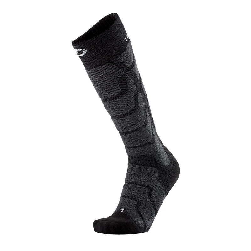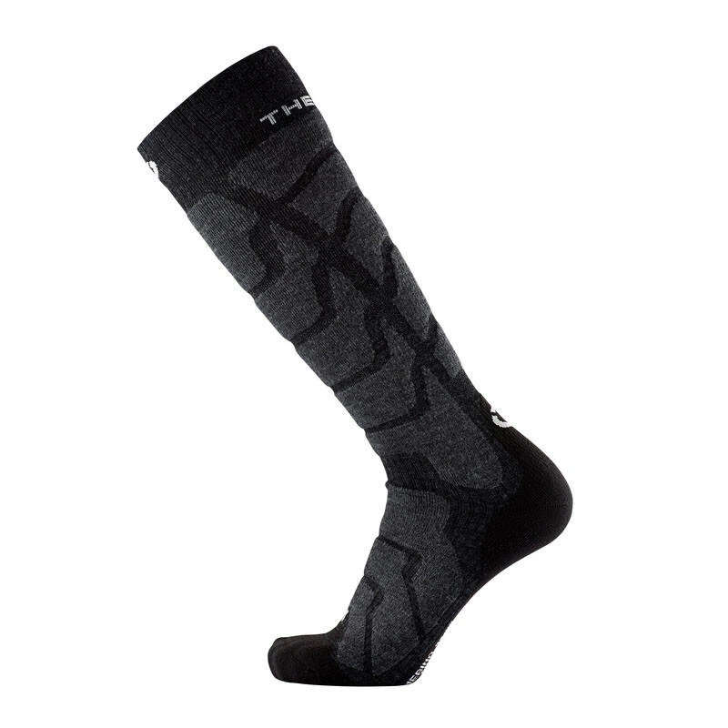 Comfortabele en ademende skisokken van merinowol. Hun specifieke constructie zorgt voor een goede vochtafvoer en biedt maximaal comfort op de gevoelige delen van de voet: het scheenbeen, de kuit en de