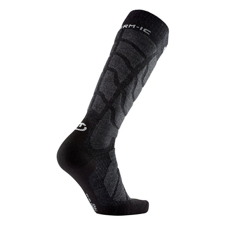 Comfortabele en ademende skisokken van merinowol. Hun specifieke constructie zorgt voor een goede vochtafvoer en biedt maximaal comfort op de gevoelige delen van de voet: het scheenbeen, de kuit en de wreef. De Moisture-Vent Technology is een specifieke constructie van de voetboog, waardoor een goede afvoer van het gegenereerde vocht mogelijk is. Verbonden met de Moisture-Vent-technologie, helpen macrokanalen om vocht uit de skischoen te leiden en het ademend vermogen van de voet te vergemakkelijken. Hoogwaardige sokken voor skiërs die op zoek zijn naar comfort en techniek.