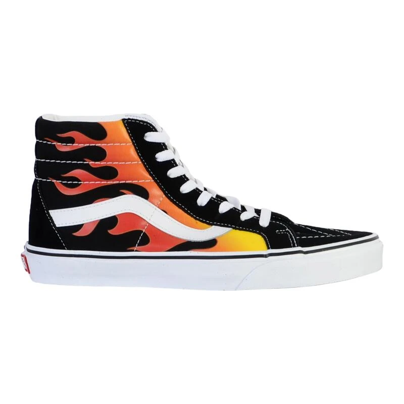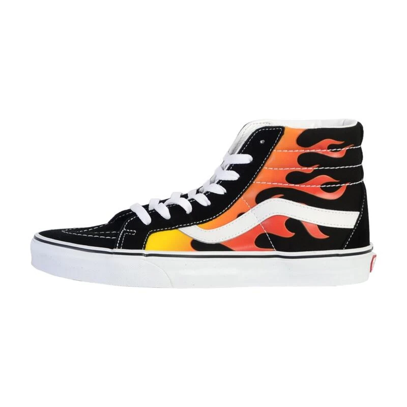 VANS SK8-HI HERANGSUEKLAME schoenen – VN0A2XSBPHN Vlam SK8-HI HERZICHTEN, Legendarische High Top Vans Model opnieuw gelanceerd met een vintage touch, presenteer een gedrukt canvas en suède, slijtvaste versterkte tips, gevoerde nek voor ondersteuning en flexibiliteit, en de originele rubberen wafelzool. Details – Samenstelling: leer, stof